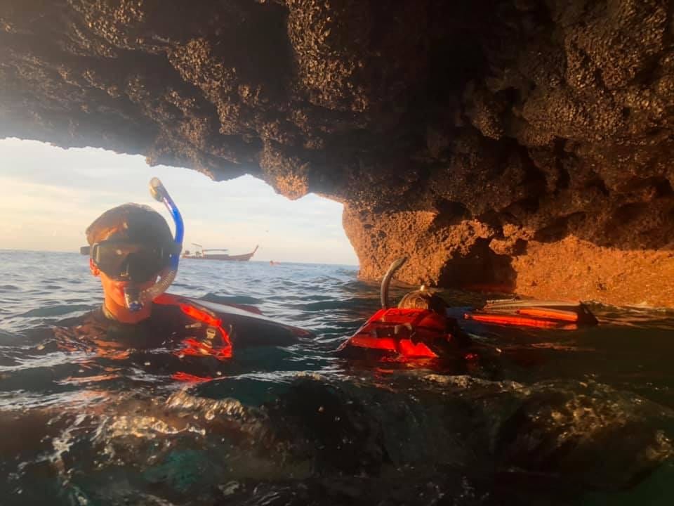 Phi Phi feels different from the moment you leave Phuket behind. During the day, everything is movement. You slip into the water and lose the sense of where your body ends and the ocean begins. Fish move around you without hesitation, and if you are lucky, you will spot baby sharks moving with purpose beneath the surface. You are not observing nature. You are inside it.
